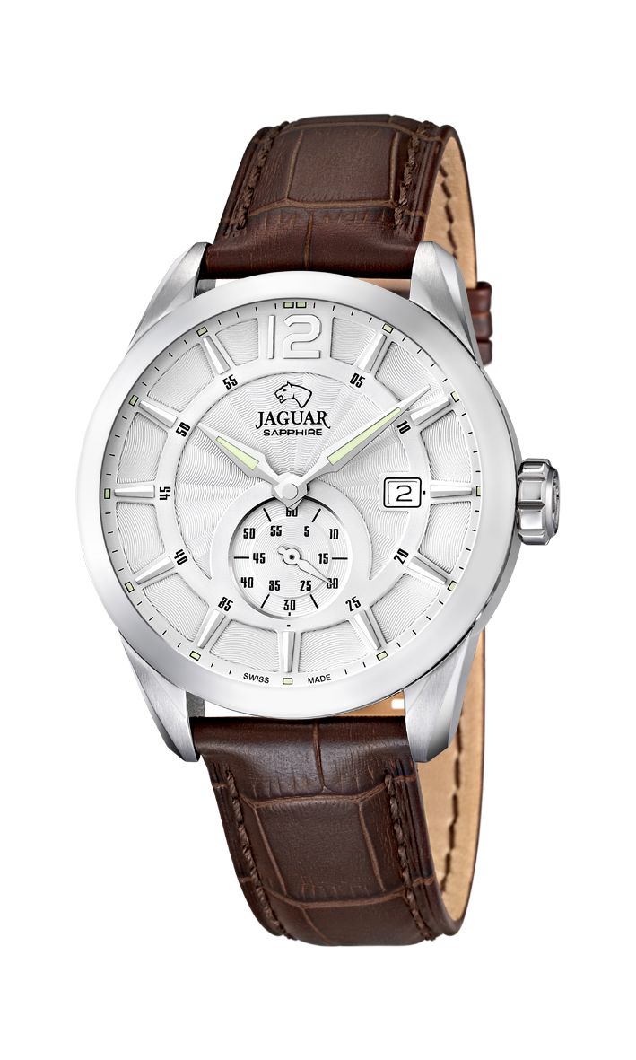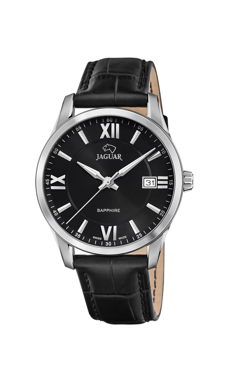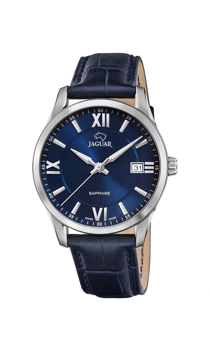 Мужские классические часы Jaguar J663/2 с круглым стальным корпусом диаметром 43 мм подчеркивают элегантность и сдержанный стиль. Синий циферблат с накладными метками и стрелками, покрытыми SuperLuminova, обеспечивает четкую видимость в любое время суток, что делает их практичными для повседневного использования. Кварцевый механизм Ronda гарантирует высокую точность хода и надежность, а индикация даты добавляет функциональности, позволяя всегда быть в курсе актуальной информации.