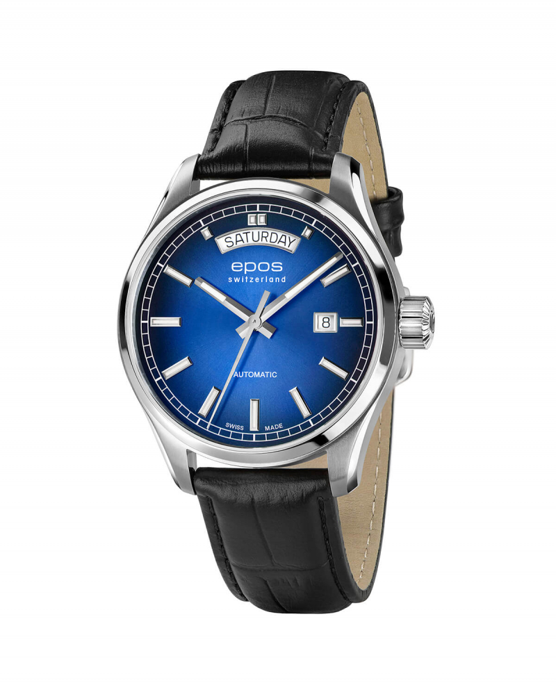 Модель Epos 3504.131.96.16.30 – это автоматические мужские часы с круглым корпусом диаметром 43 мм, которые идеально подходят для повседневного использования и активного отдыха. Их синий циферблат с накладными метками и стрелками, покрытыми SuperLuminova, обеспечивает отличную читаемость даже в условиях слабого освещения, что делает их удобными для любого времени суток.