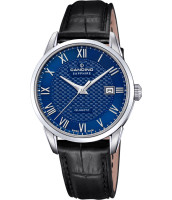 Корпус из нержавеющей стали диаметром 41 мм придает часам прочность и солидный вид, подходящий для делового стиля или casual-образа. Синий циферблат с накладными часовыми метками и стальными стрелками, покрытыми люминесцентным составом, обеспечивает легкую читаемость времени даже в условиях слабого освещения. Индикация даты добавляет функциональности, а кожаный ремешок синего цвета с классической пряжкой обеспечивает комфортную посадку на запястье и гармонично дополняет общий эстетичный облик.